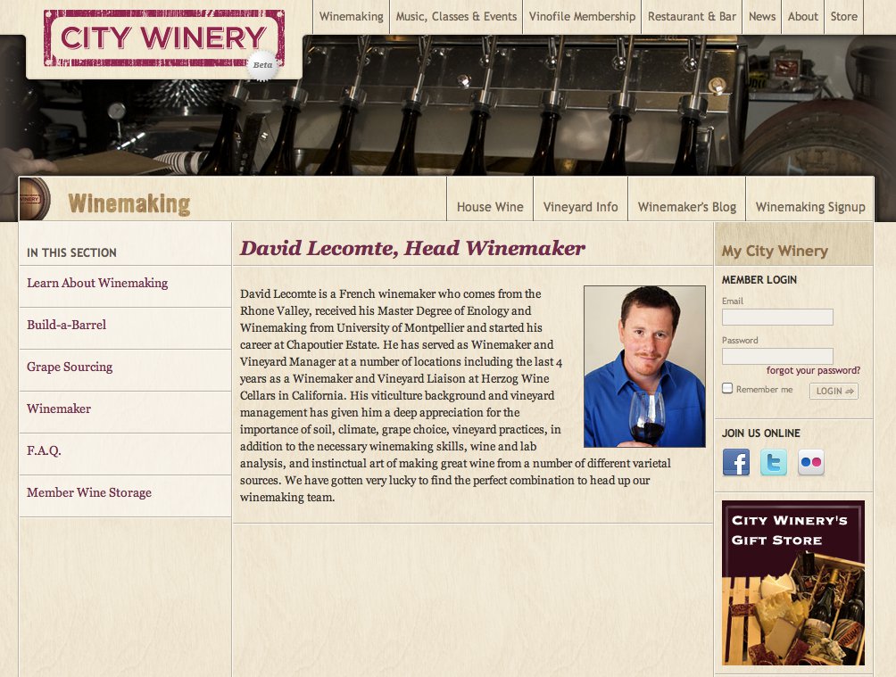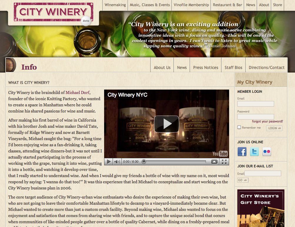 We provide ongoing support and custom development for City Winery, a concert venue and restaurant based in New York City. The site features a full e-commerce ticketing system. We also developed customized ticketing reports and integrated with their in-house Point of Sale system.